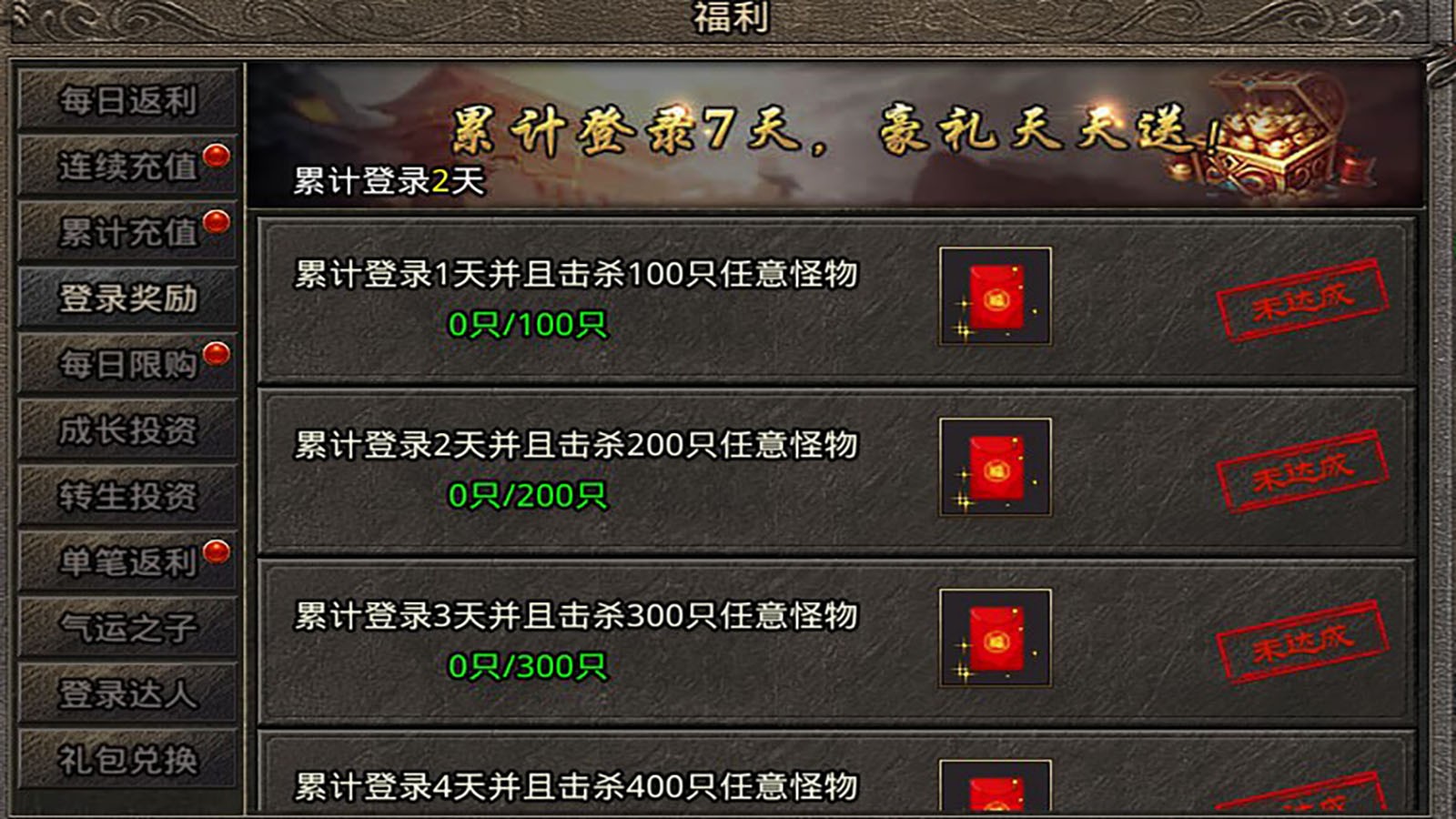 2.登录奖励、成长奖励、转生奖励、气运之子…上线就有礼包拿,每日都可以领取,好礼多多!