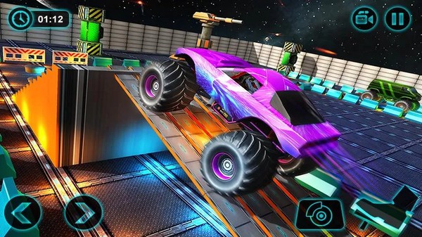 3.非常炫酷的越野皮卡和驾驶赛道,有点科幻赛博风格的感觉,很酷。