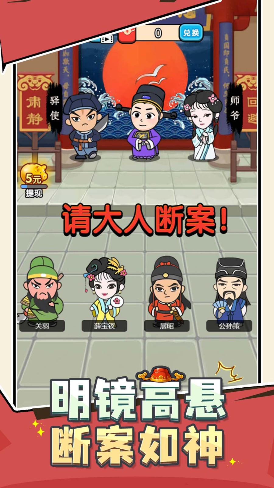 2.你回答出来的题目越多,你就越快升级,通过每日断案逐渐变换身份,加官进爵。