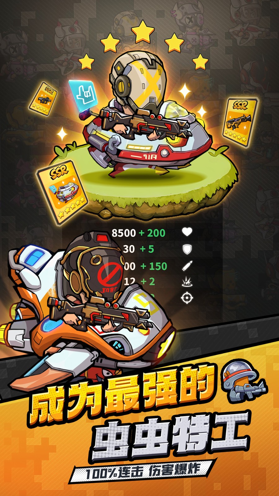 3.配合音效,完成自己的虫虫特工战斗冒险,让你的感官完全融入游戏。
