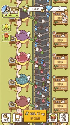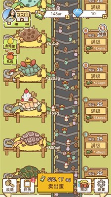 1.放置模拟经营小游戏,经营工厂,收集不同的动物,生蛋出售赚取收益,将你的工厂越做越好。