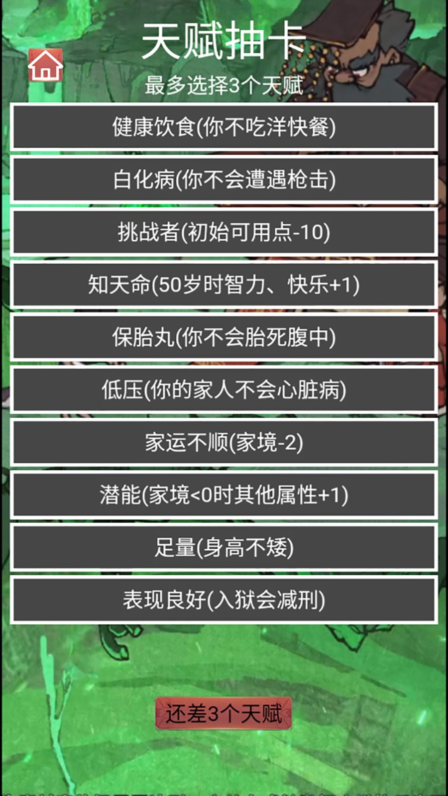 2.开局可以抽取不同的天赋卡,每一种天赋都会赋予不同的能力,在人生中起到不同的作用。