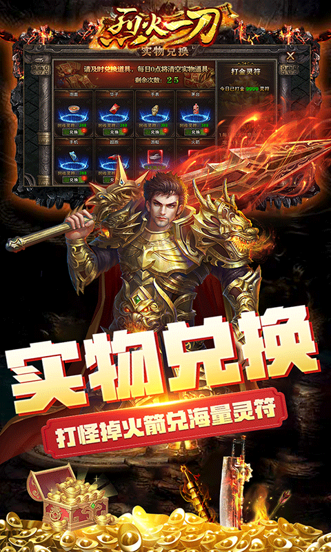 5、超强打金实物兑换,打怪掉落极品火箭,可兑换海量灵符