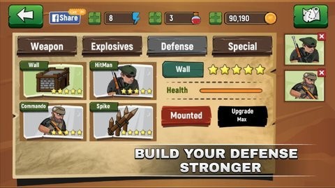1.有丰富的武器库可供玩家挑选,各种枪械和重型武器都可以自由选择,还能不断升级。