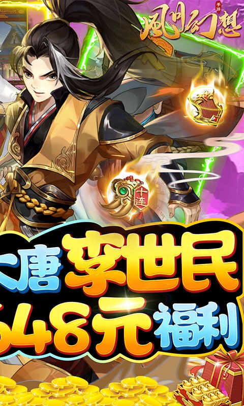 单笔充值648元 6480元宝*5、风月招募令*20、SSR随机碎片*100