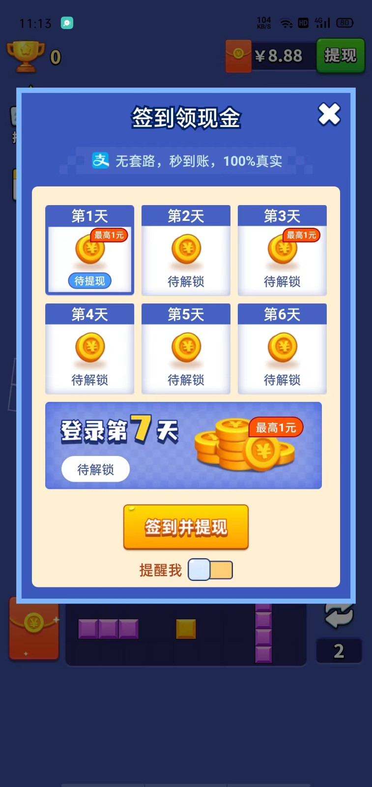 3.每日上线签到就能领取,还有在线和消除的红包可以观看广告视频领取。