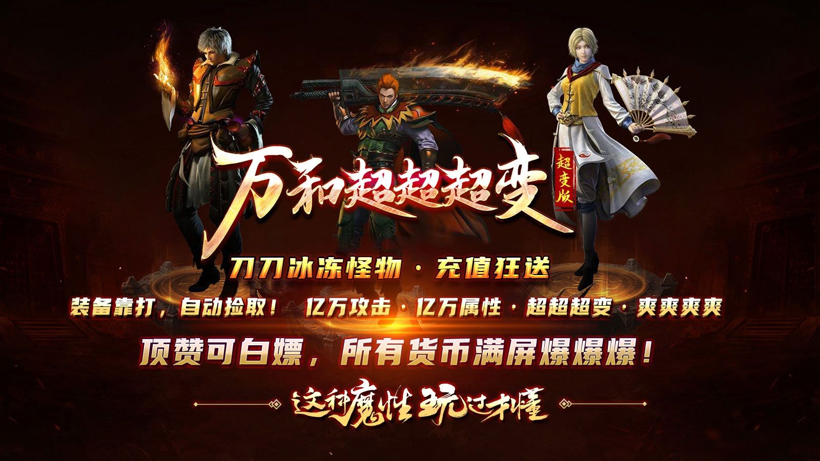 万和超超超变是一款玩家拥有超强打击感的战斗打怪游戏。在万和超超超变中,刀刀冰冻怪物,只要上线就能领取豪礼,装备全部靠打,自动拾取、自动回收一个不辣,满屏满地图都在爆,爱玩传奇的玩家不要错过。