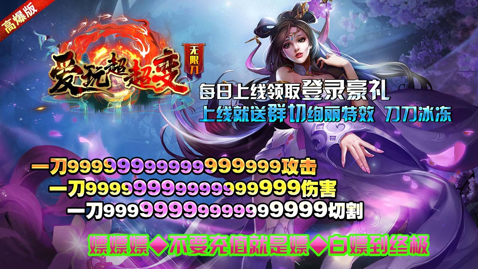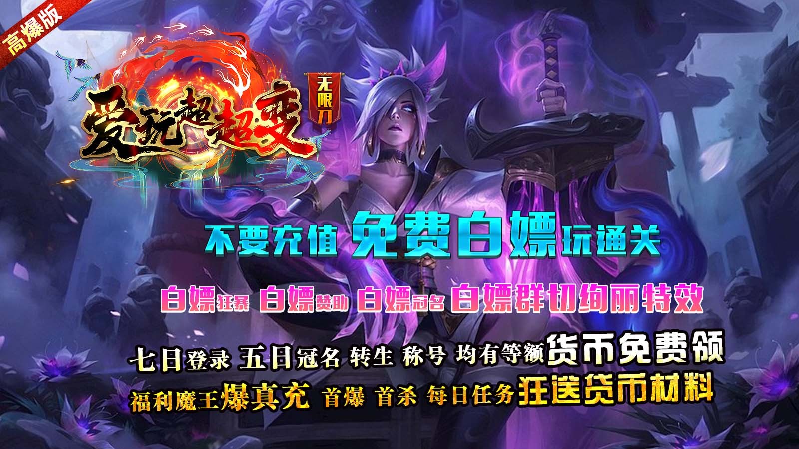 真正的散人超变无限刀,每天上线就能白嫖,所有豪礼全部免费送,等级、转生、称号、首杀、首爆全部都有大量的奖励可以领取。