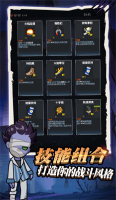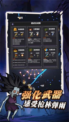 2.多样玩法等你来体验,不断解锁更多的内容,收集新的技能,合成超武,提升战斗能力,感受畅爽冒险。