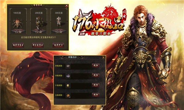 3.多样游戏玩法玩家可以任意选择,打宝、刷怪、副本、竞技等内容全都有。