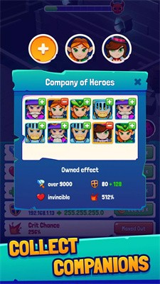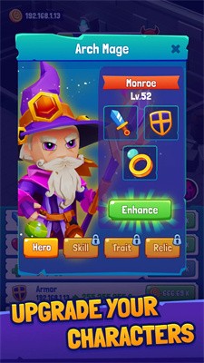 2.对小队的英雄进行全方位培养,收集新的装备道具,提升角色们的技能等级,获得更加强大的力量。