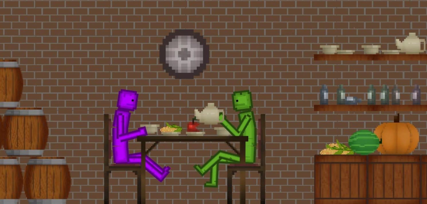1.玩家将控制不一样立绘的甜瓜人在沙盒里自由的冒险,探索不同的建筑物,收集资源。