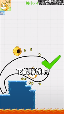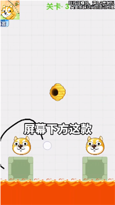 1.进入游戏开启烧脑挑战,注意观察狗头和蜂窝的距离,根据场景进行画线,完成烧脑挑战。