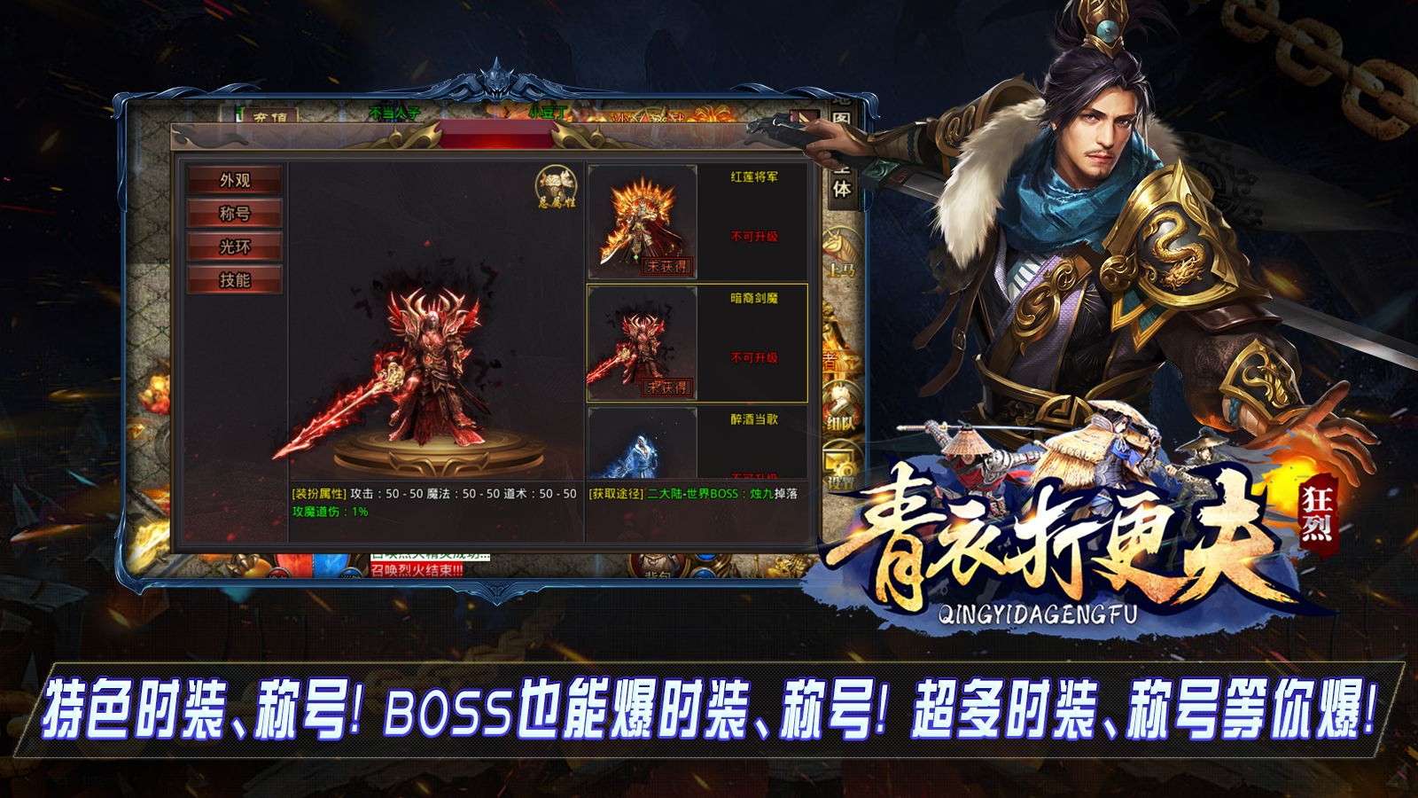 3.各种强力属性的时装等待你来装扮,不但能为你增加属性,还能展现你的气质,书写你的传奇!