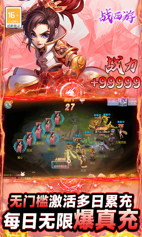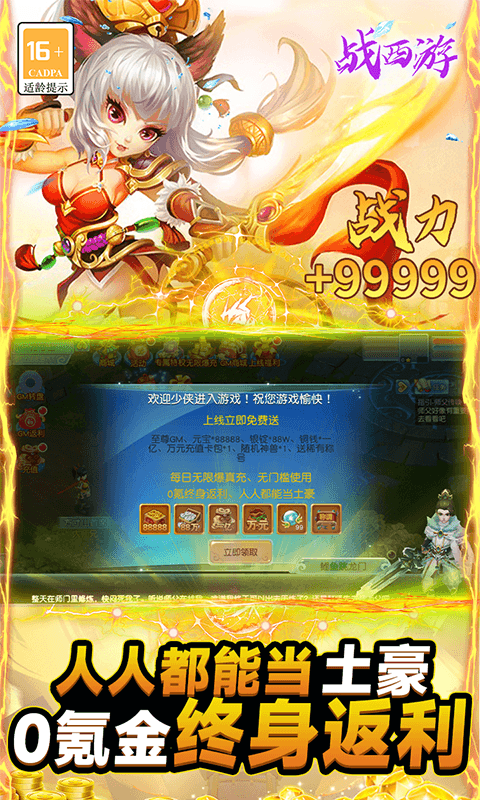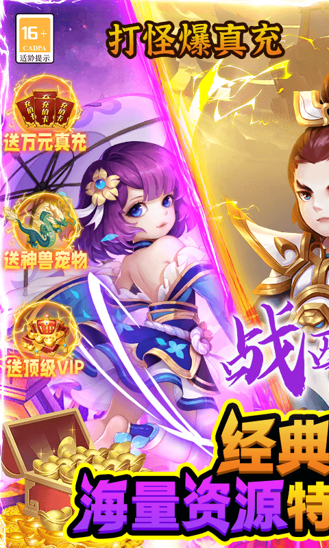 战西游送神兽万充是一款经典西游回合制手游,在战西游送神兽万充中,海量资源、特权都可以免费激活,上线就送万元真充卡、神兽、至尊GM称号以及海量资源,爆充BOSS免费刷,打怪就能爆真充,神宠、神器都能免费拿。