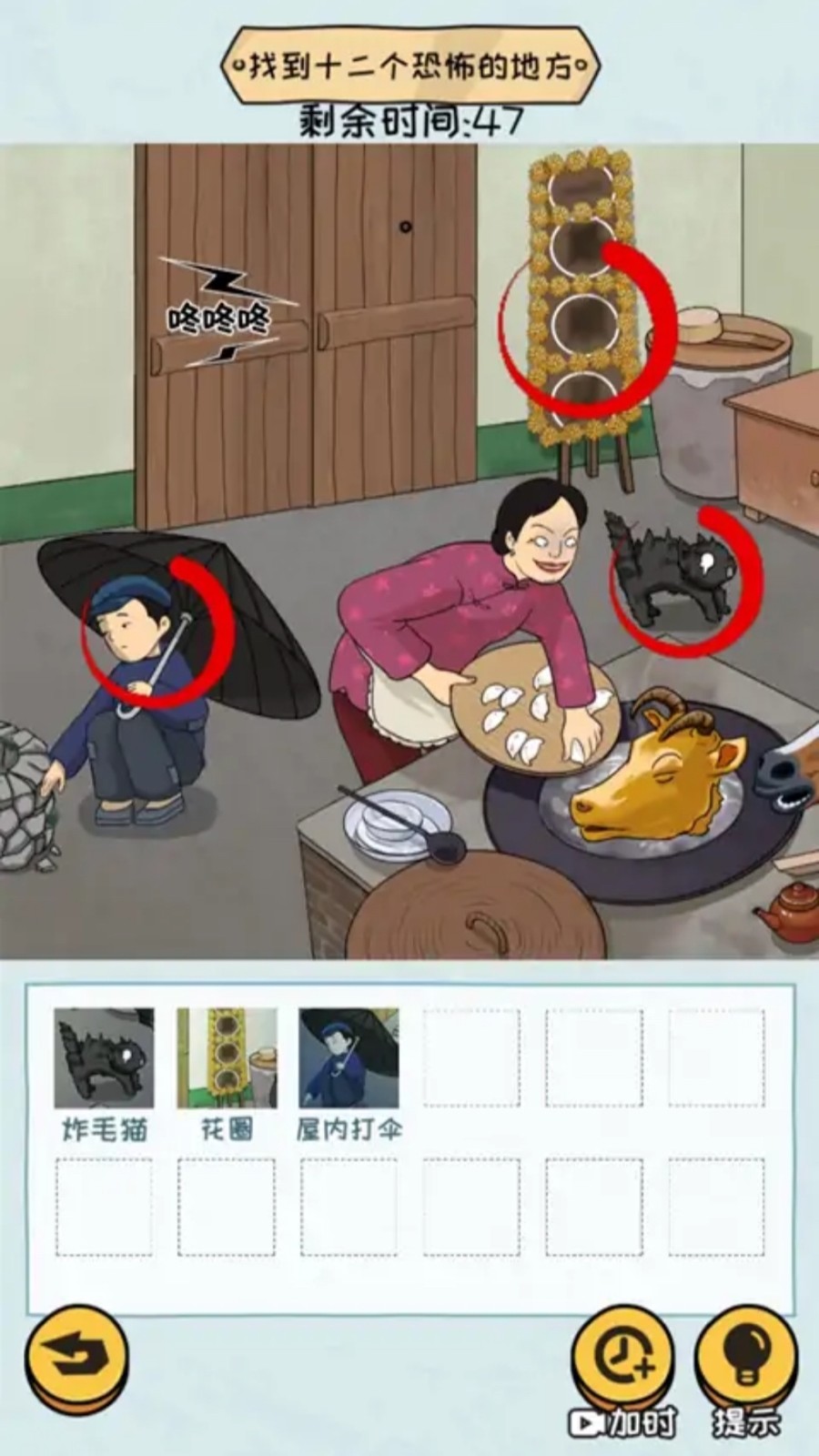 1.你要在一幅幅图画中找出不对劲的地方,每找出一处,都可以在下方看到。