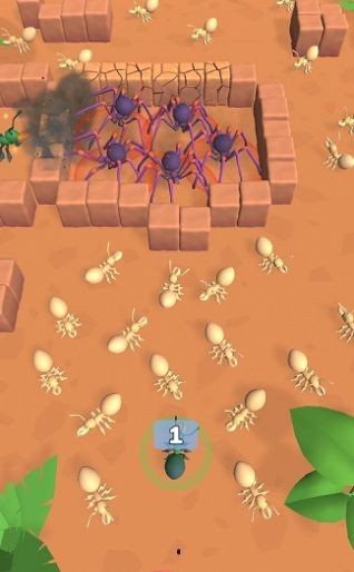 2.蚂蚁可以不断升级强化获取更强大的战力,还能通过虫卵来获得更多的蚂蚁士兵