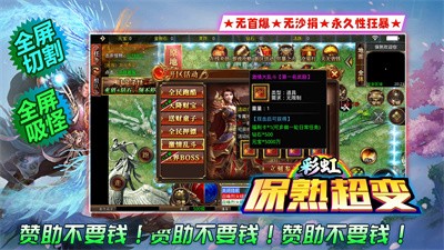 彩虹保熟超变是一款1.95传奇无限刀手游,散人可打一切货币,打怪得充值,无限循环领取,尽情享受畅爽传奇冒险。在彩虹保熟超变中,上线就送超多福利,各种材料道具应有尽有。