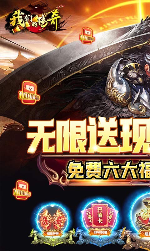 我们的传奇(无限现金代充)真白嫖!华丽登场! 创角就送六大超值福利! 每日登录免费获得现金代充卷,可进行直购商品购买,可进行豪华抽奖。 每日可挑战代充副本,通关副本可获得代金卷,实现真白嫖。 每日击杀BOSS,也可获得代金卷,白嫖嫖到手抽筋。 每日在线时长满足后,即可获得代金卷,全网唯一真白嫖。