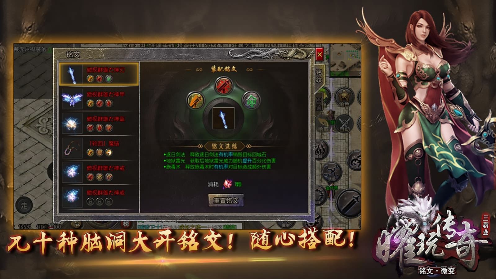 曜玩铭文微变,一款玩法不错的复古传奇竞技冒险游戏。曜玩铭文微变游戏副本任务多,玩法丰富,很多的传奇战斗等着你,邀请自己的好友参与竞技,更多的boss系统可以组队挑战的,感受世界设定充满不一样的奇幻战斗感受,来冒险吧。