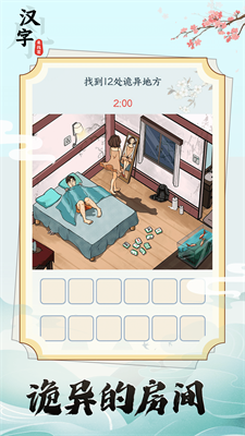 汉字来找茬是一款趣味找茬闯关小游戏,各种有趣的找茬关卡等你来挑战,火眼金睛找出关卡中的物品,完成各种任务。在汉字来找茬中,解锁更多内容,享受轻松愉快的烧脑体验。