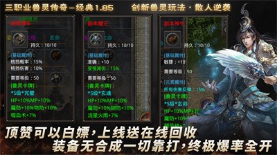 游趣兽灵传奇是一款1.85微变传奇手游,三端互通,简单粗暴无暗坑,装备全靠打,刷BOSS得神装,尽情享受激情传奇。在游趣兽灵传奇中,各种玩法自由选择,享受全新传奇冒险。