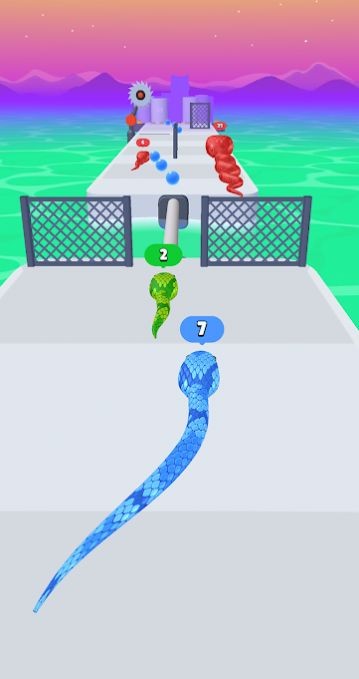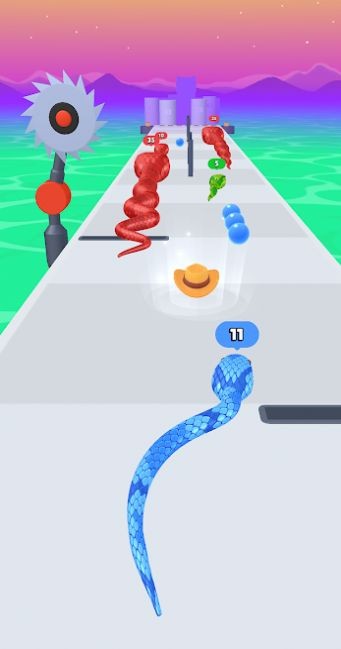 蛇跑步竞赛游戏中玩家将操控蛇来进行跑酷竞技,不仅要躲避各种各样的障碍物,还要超越所以的蛇才能获得胜利。游戏操作非常简单,左右移动完成躲避,还能收集道具来提升你的速度。