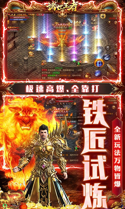 《诸世王者》船新版本携带万能回收系统免费兑充变态归来。 爆率全面上调100%,装备全靠打,真上班挂机下班收菜,福利超前,诚意满满。新增特色玩法:铁匠试炼、仙位系统、真充兑换等,既还原了传奇经典玩法又带来全新的游戏体验!PK打怪强化战斗体验,刀刀切割刀刀暴击,每一次战斗都有不一样的刺激体验!沙城争霸、沙巴克、火龙试炼等玩法应有尽有。