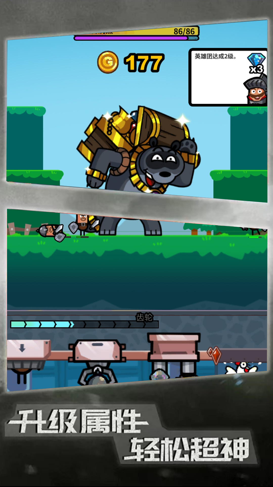 1.给英雄佩戴更强力的头盔和武器,让它们的战斗力变得更强大,可以挑战更多的BOSS。