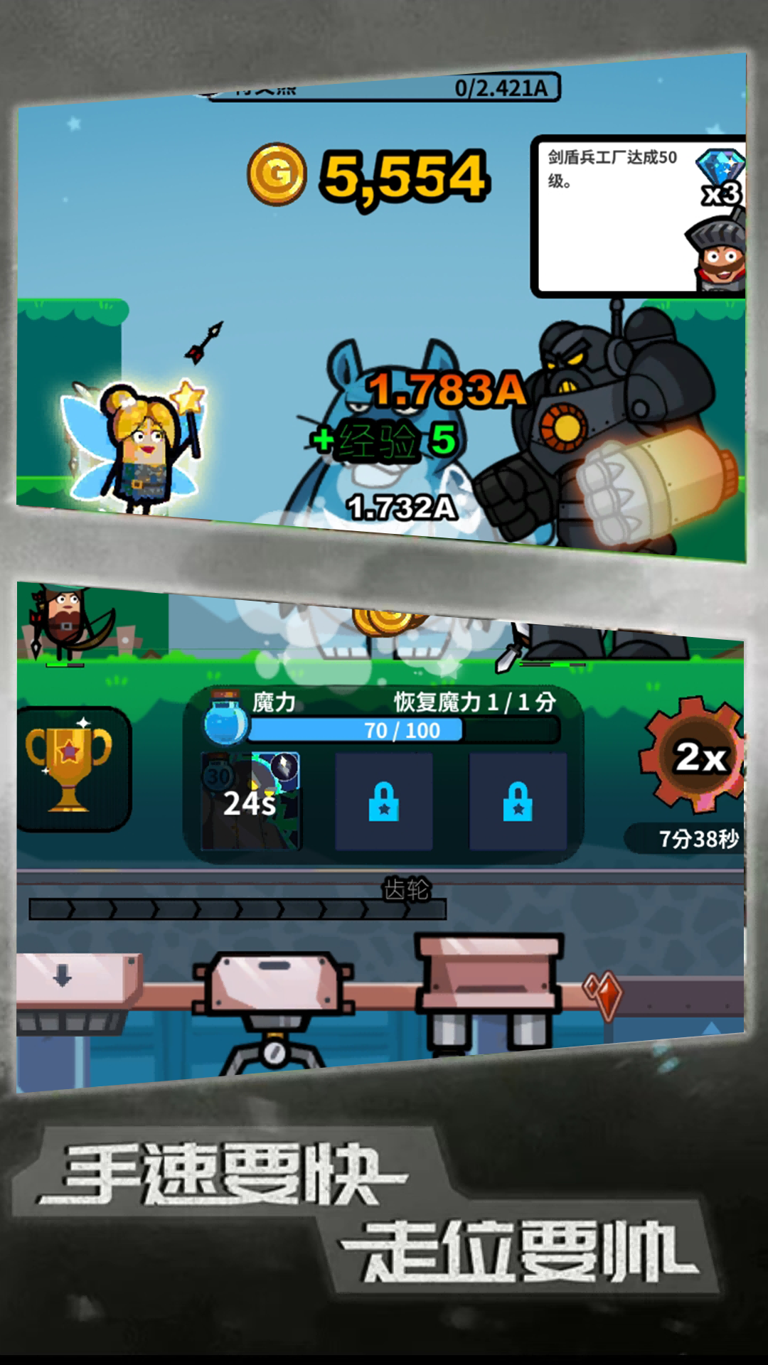 3.使用工厂生产的英雄击杀怪物,无限连击技能,升级属性,给你带来超级酷爽的游戏体验。