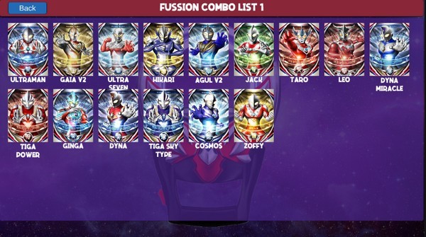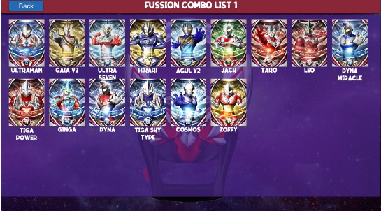 可以看到有很多页的融合组合,玩家可以根据自己的喜好来融合出想要的奥特曼然后点击双卡融合
