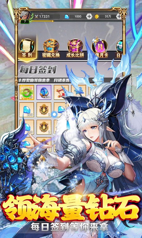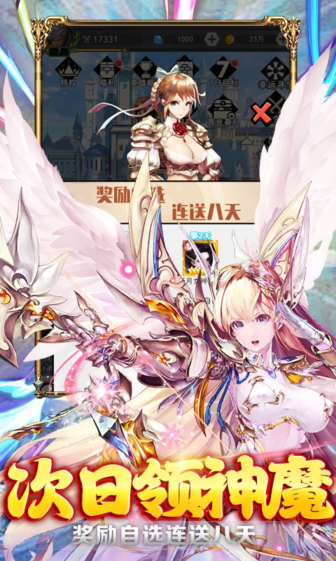 3.次日登录送神魔,八日登录送海量钻石,整套红装;