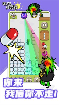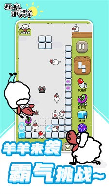 2.游戏中有经典玩法和压扁玩法,你可以灵活控制俄罗斯方块进行移动,压住这些活蹦乱跳的小羊。