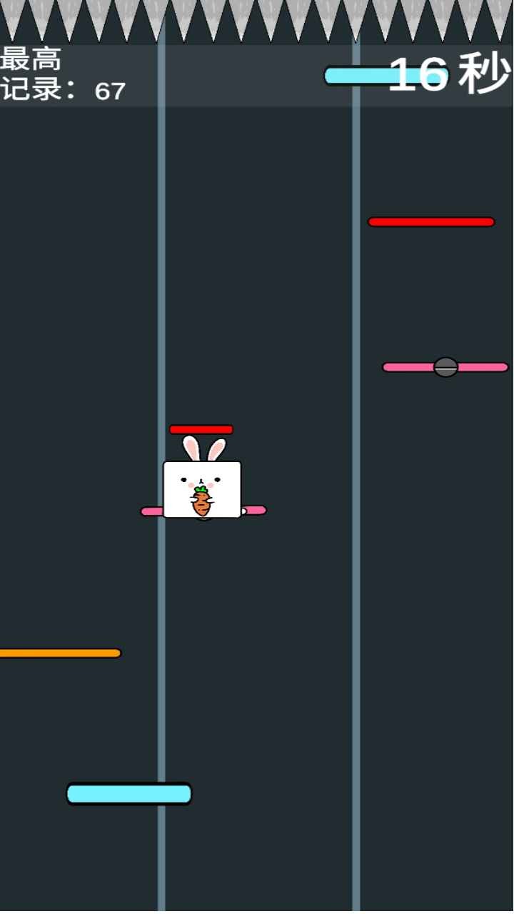 1.玩家操控小兔子在横杠之间不断下落,只能下落到出现并且有横线的地方才行