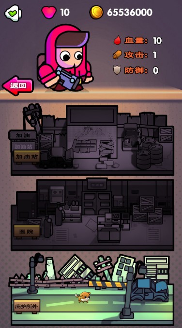1.庇护所外可以收集到物资和伙伴,玩家还可以前往加油站、医院等地方收取特定物资