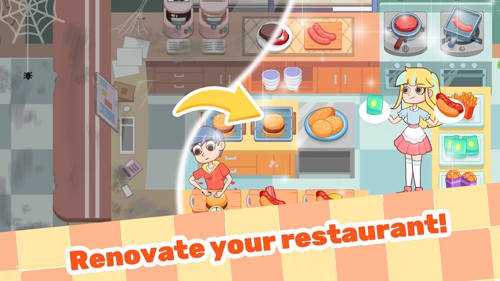玩家将在游戏之中感受无限的趣味,深入引人入胜的故事情节,开设自己的餐厅,让自己变得更加快乐吧。