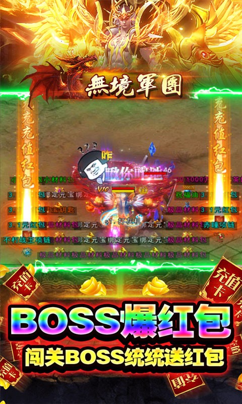 无境军团狂飙代金券直充是一款高爆正版传奇手游,在无境军团狂飙代金券直充中,玩家开局就送疯狂抽,还有免费刷充工具无限得红包,打怪刀刀切割爆光柱,还有红包无限掉落,上线就送狂飙打进特权和VIP,每日都能领红包