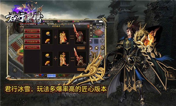 君行冰雪传奇,一款玩法不错的热血冰雪版本传奇游戏。君行冰雪传奇游戏中玩家可以选择自己的角色职业,搭配高级武器,合成强大的材料道具,打造顶级的套装,安排一系列的战斗。游戏剧情故事还是很丰富的,自动寻路冒险,全新挑战开启。