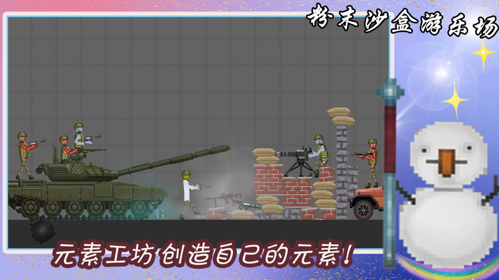 粉末沙盒游乐场是一款是沙盒世界的物理碰撞类型的游戏。在粉末沙盒游乐场中的世界是像素风格的,玩家解锁各式各样的不同道具来完成挑战,从不同的玩法之中获得快乐,解锁更多的玩法,感受游戏的无限快乐。