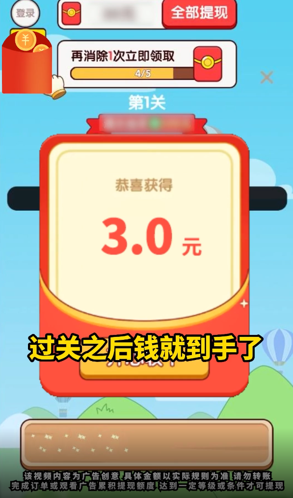 没错,玩家只需要完成消除或是通关就可以领取红包奖励
