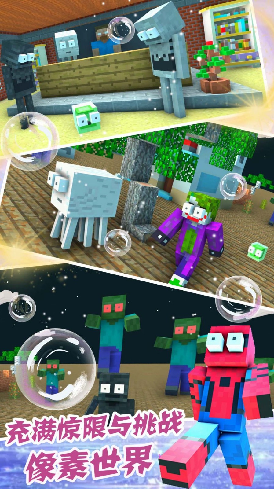1、可获得的物品、资料和材料,这里还有更多的敌人出现,全都是mc里面的角色,猪头人,爬行者,僵尸等等。