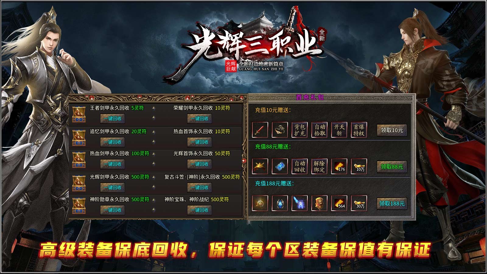 光辉三职业是一款80复古三职业的传奇游戏。在光辉三职业中,所有地图每小时刷新超级BOSS,地图非常好下,神装神器不断爆出,终极装备唾手可得,每个大陆都有自己的精彩,绽放自己的光芒吧。
