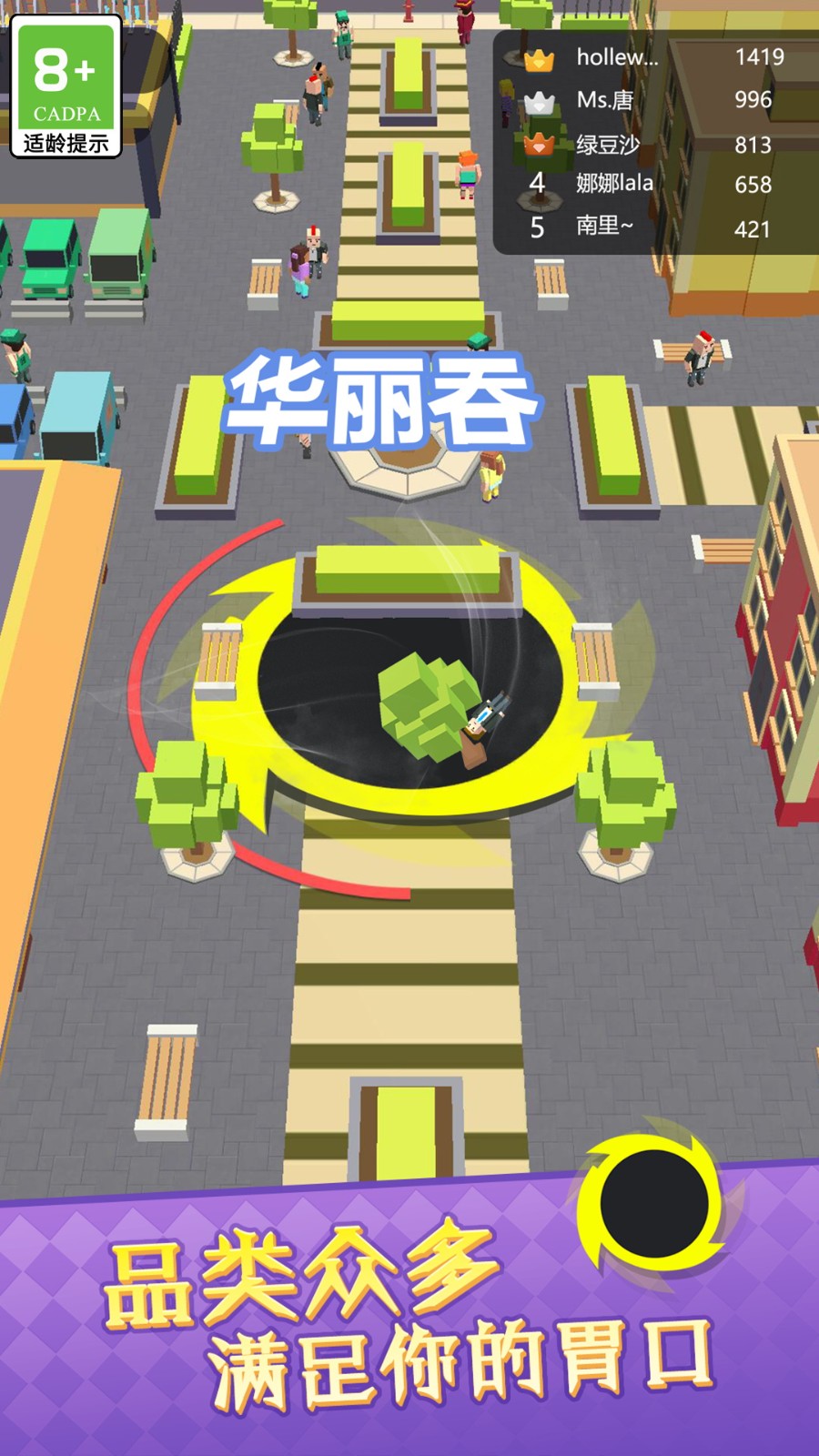 2.经过不断的吞噬你将会变大,小镇之中还有其他的真人玩家和你展开激烈的比拼。