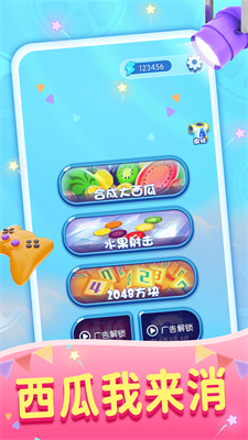 1.游戏中有合成大西瓜、水果射击、2048方块等模式可以选择,融合了多种消除玩法,十分有趣。