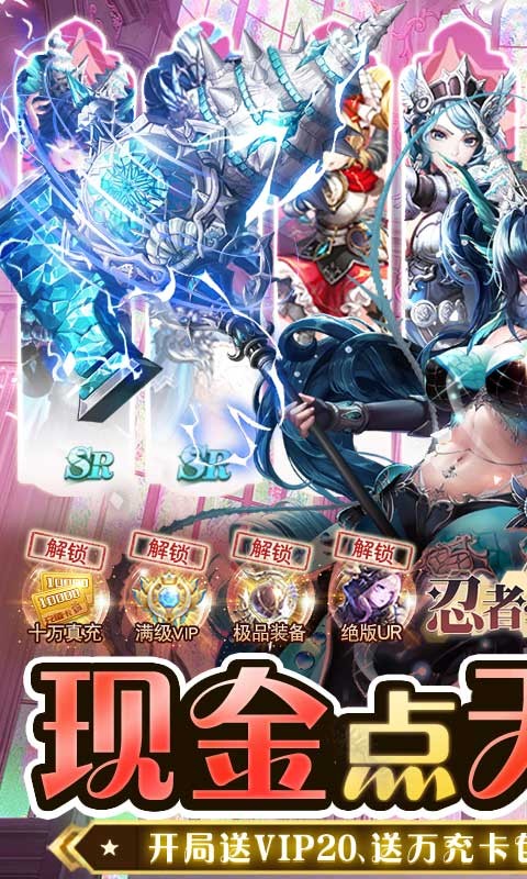 忍者学园现金点免支付是一款二次元卡牌冒险游戏,在忍者学园现金点免支付中,有超多美少女等你来养,登录即送UR光暗英雄和全套红装以及五星英雄自选,还有满级VIP和十万真充可以直接领取