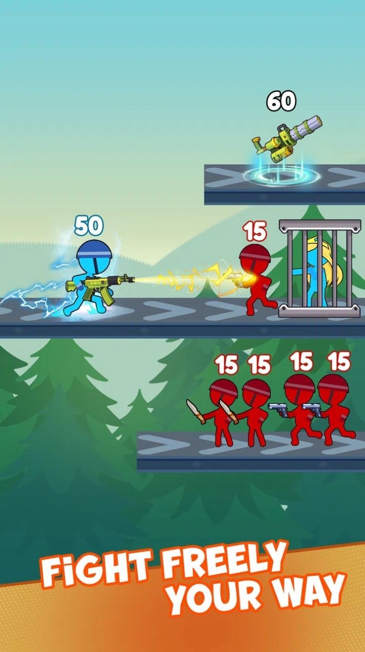 1、拥有丰富的武器系统,这里还有更多的数字可以搭配,真实的火柴人射击战斗开始了,采用简单易懂的操作方式。