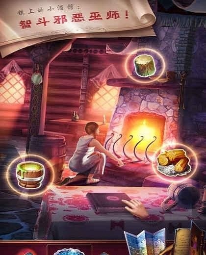 3.旅馆老板问你两个问题,我选择的是是给他的,老板想要胸针,回到旅馆场景中,会发现火炉边的女孩不见了,点击火炉上面的炉檐,获得不完全的帕子和钳子