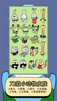 2.超过72个动物皮肤等你来解锁,自由装扮你的动物角色,自由装扮角色造型,让你感受不同的乐趣体验。
