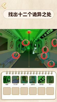 找出细思极恐,一款休闲益智类型的找茬找不同游戏。找出细思极恐游戏中玩家可以根据图画上的不同,来快速寻找不同的点,这里有很多的道具可以使用的。根据线索,然后在考察你的逻辑思维能力和观察力,快速将所有不一样或者诡异的地方找出。