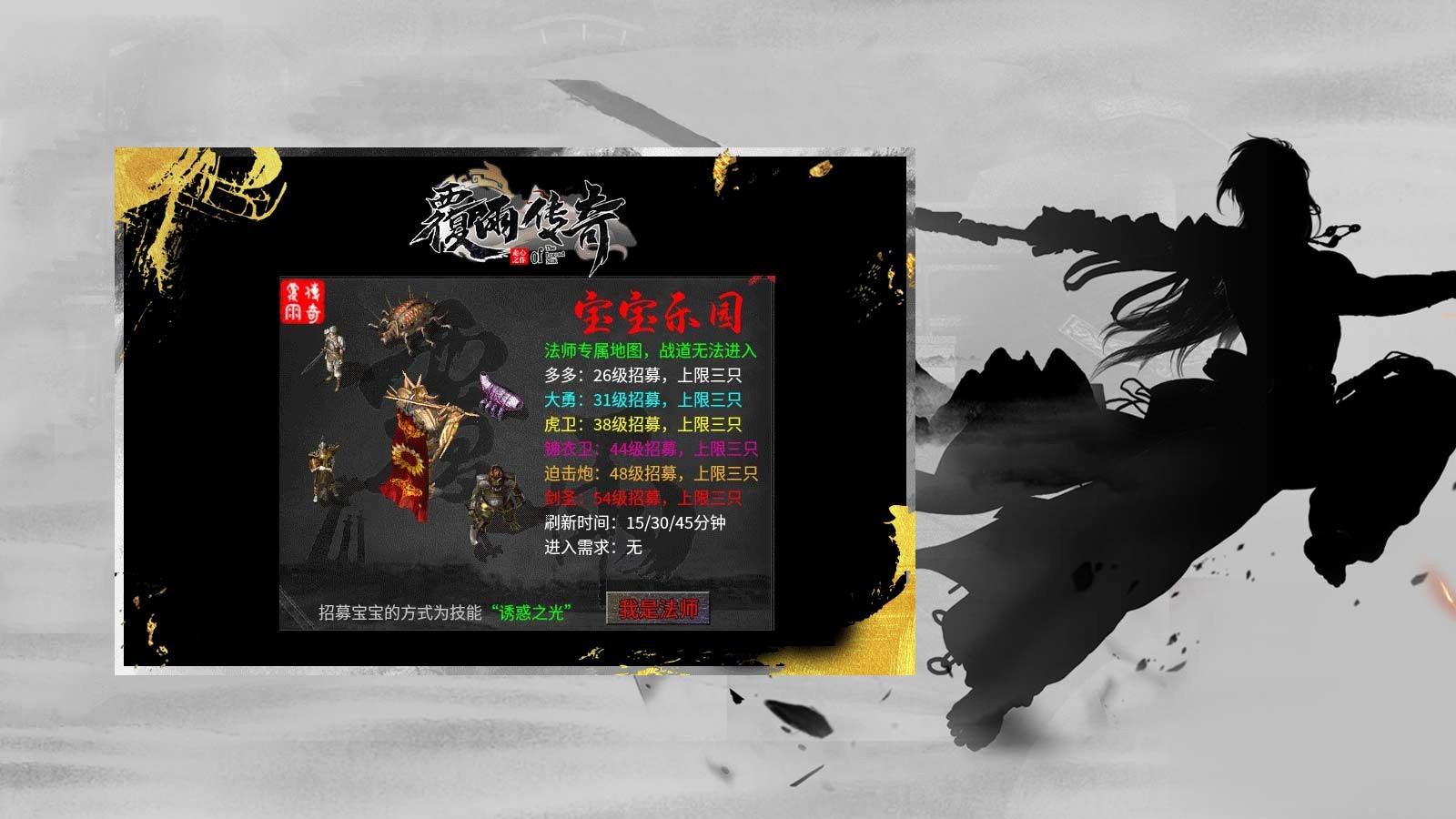 3.法师阶至“法神”获得四级魔法盾,肉身成圣!道士进阶至“天尊”获得召唤天使。
